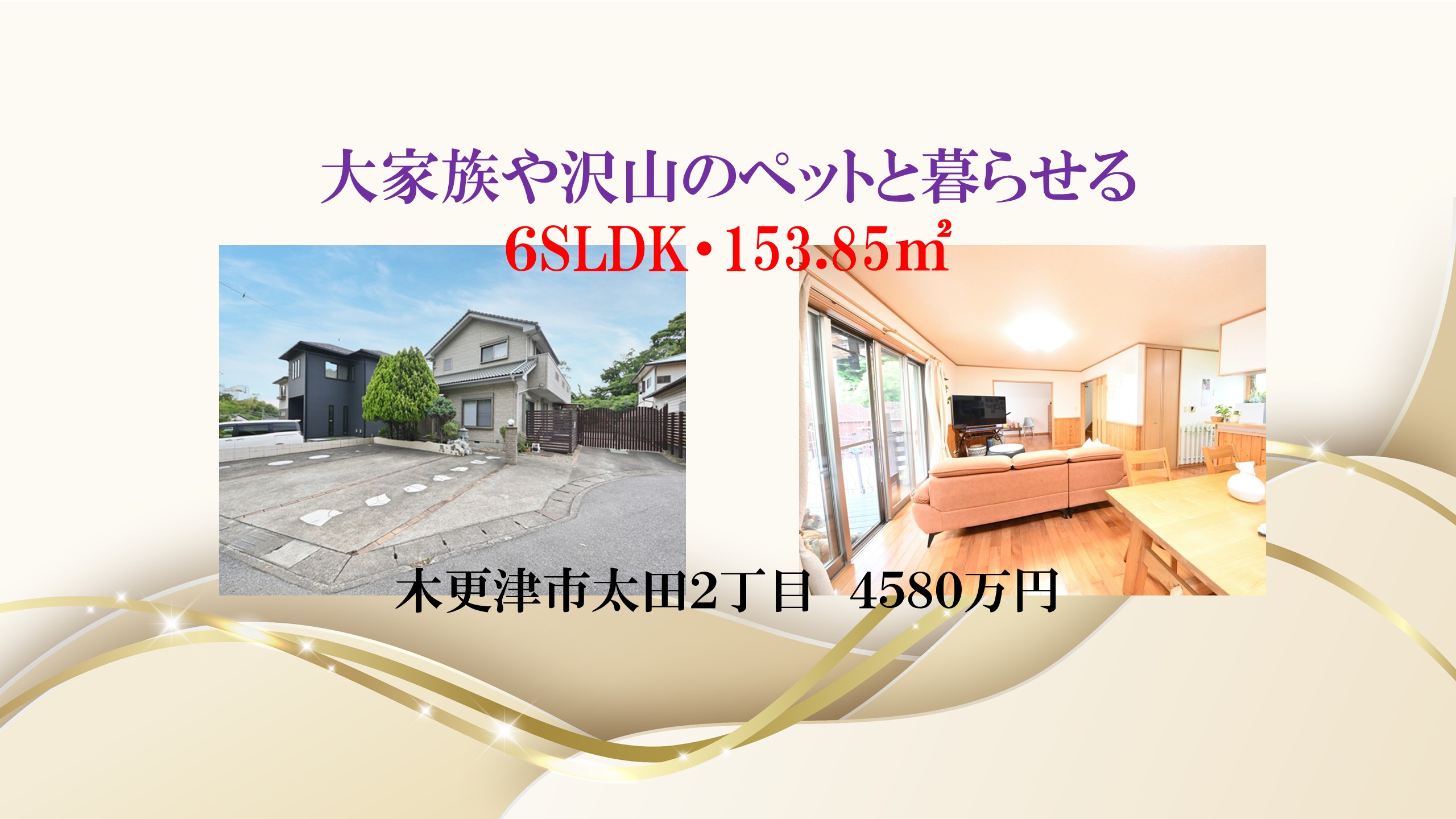 木更津市太田2丁目・3世帯で暮らせる家を公開しました。6SLDK・153.85㎡の広々とした室内。114坪の敷地は駐車場5台停車可能。太田山公園隣接で、四季折々の自然も楽しめます。周辺環境も充実し生活しやすい人気の太田2丁目での素敵な新生活をご検討下さい。