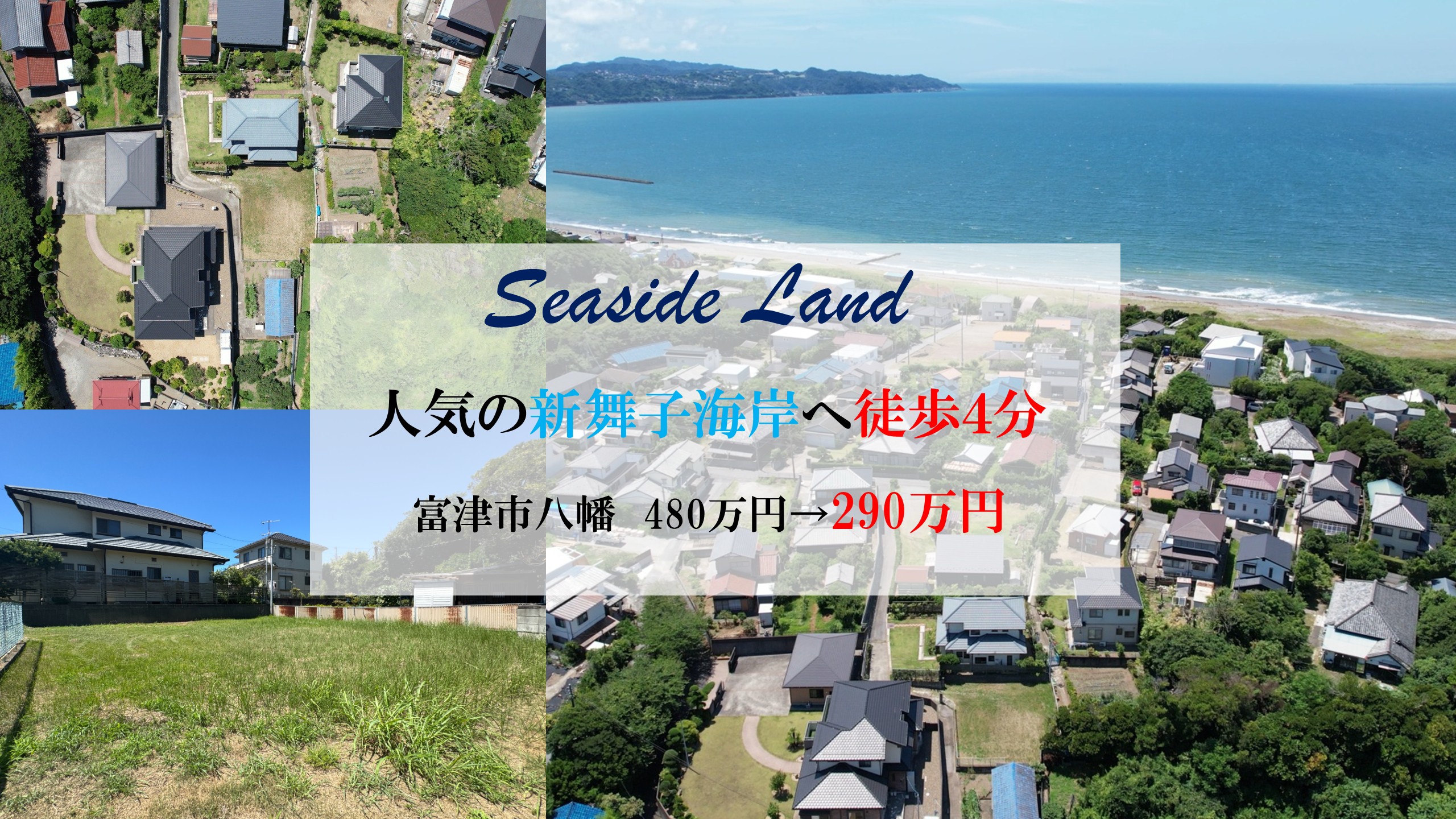 富津市八幡・潮風を感じるシーサイド売地の価格を改訂しました。480万円から39%ダウンの290万円(坪4万円台)へ。お求めやすい価格に加え、新舞子海岸へ徒歩4分の立地。永住・別荘向きの売地を是非ともご検討下さい。