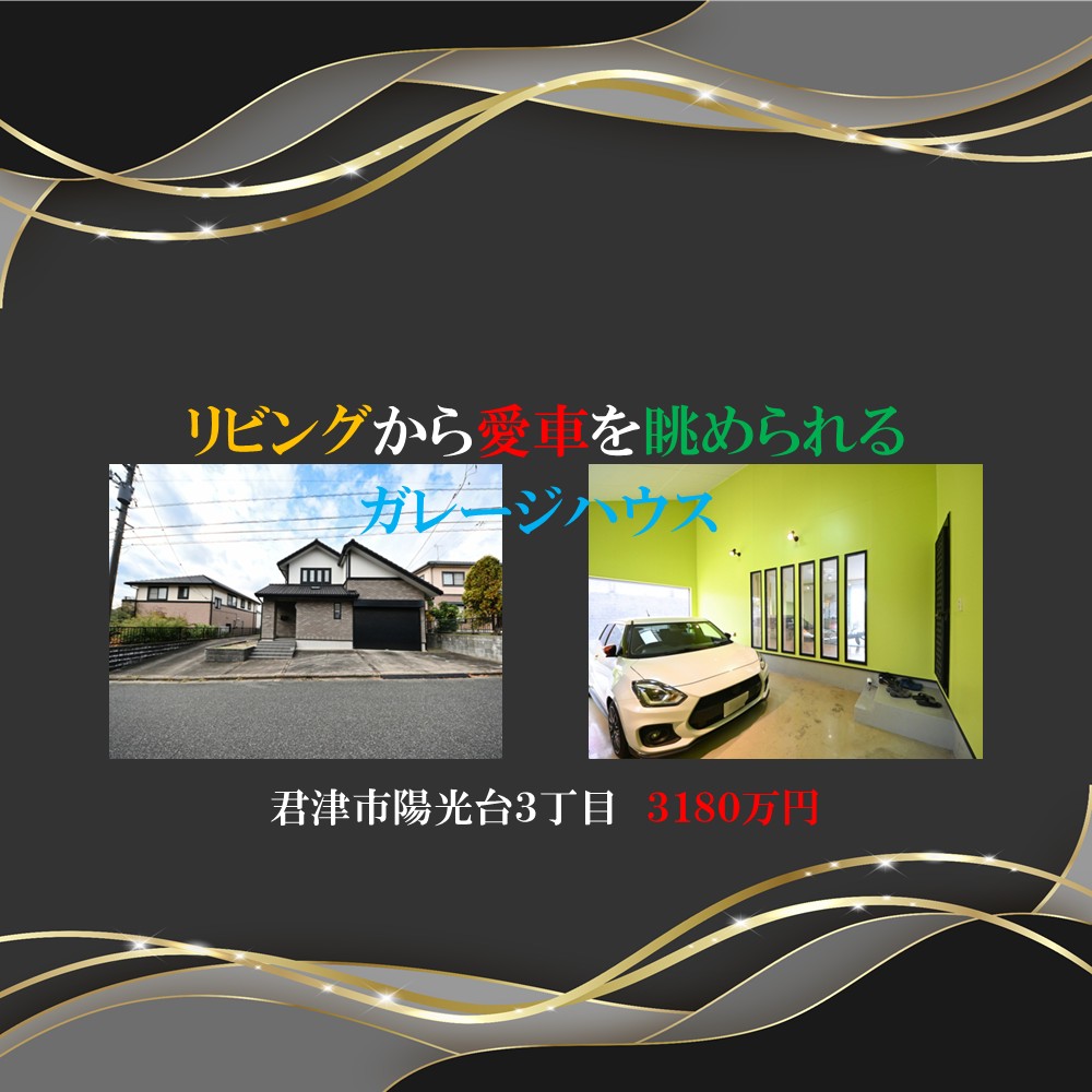 君津市陽光台3丁目・魅惑のガレージハウスのYoutube動画を公開しました。ドローンでの空撮映像や100坪のゆとりある敷地・206㎡の広々とした室内の様子を公開しています。リビングから愛車を眺められる素敵な住宅です。ぜひこの機会に動画で物件をご覧下さい。