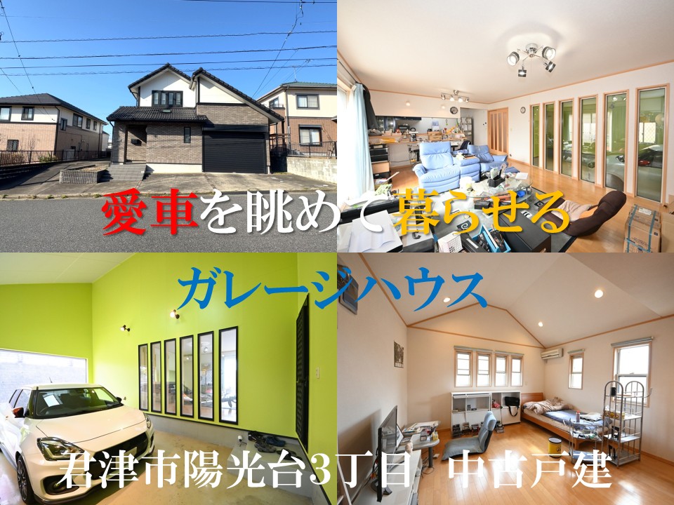 君津市陽光台3丁目・中古戸建 リビングから愛車を眺められるガレージ車庫 敷地はゆとりある100坪 全居室収納付きで広々生活できる206㎡・4SLDK