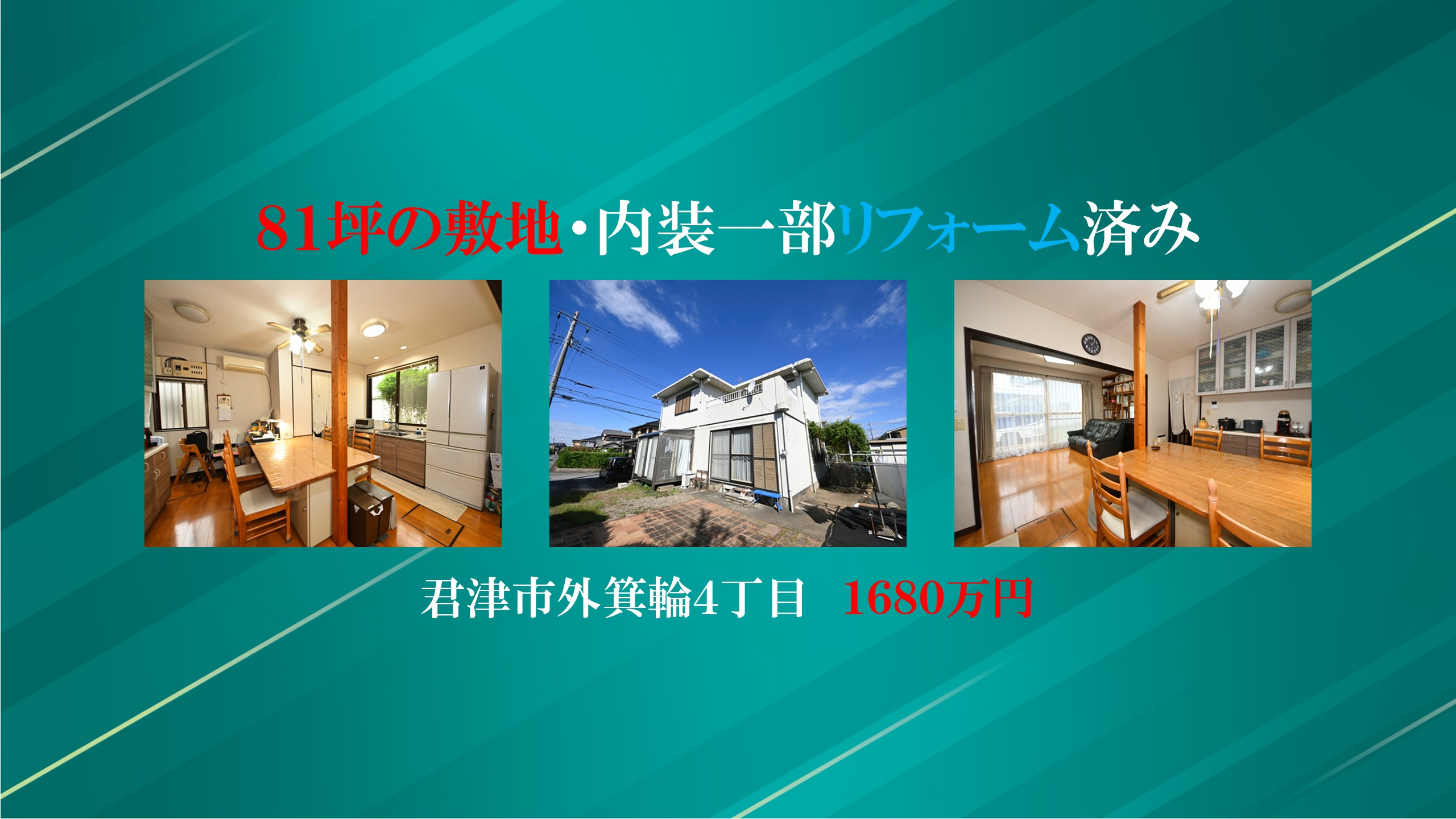 君津市外箕輪4丁目・中古戸建を公開しました。 81坪の敷地で家庭菜園やBBQなど趣味を楽しむ。キッチンや洗面台等の室内一部リフォーム済みの快適な住居。周辺は商業施設や病院など徒歩圏内で暮らしやすい住環境です。