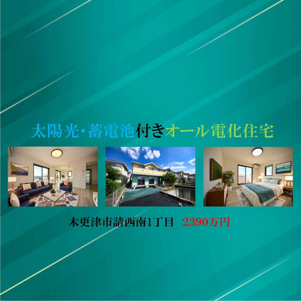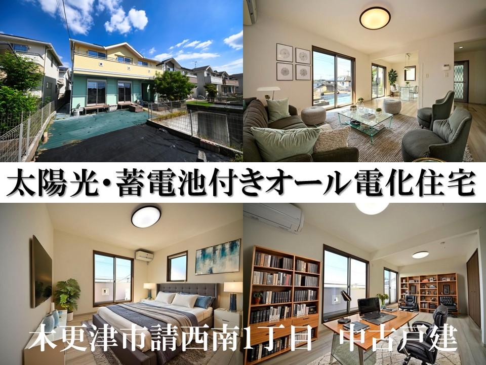 木更津市請西南1丁目・中古戸建を公開しました。災害時も安心な太陽光発電・蓄電池付きのオール電化住宅。真舟小学校まで徒歩2分、お子様も通学しやすい環境です。 2015年築・ウッドデッキや電動シャッターなど住宅設備も充実。ぜひこの機会にご覧ください。