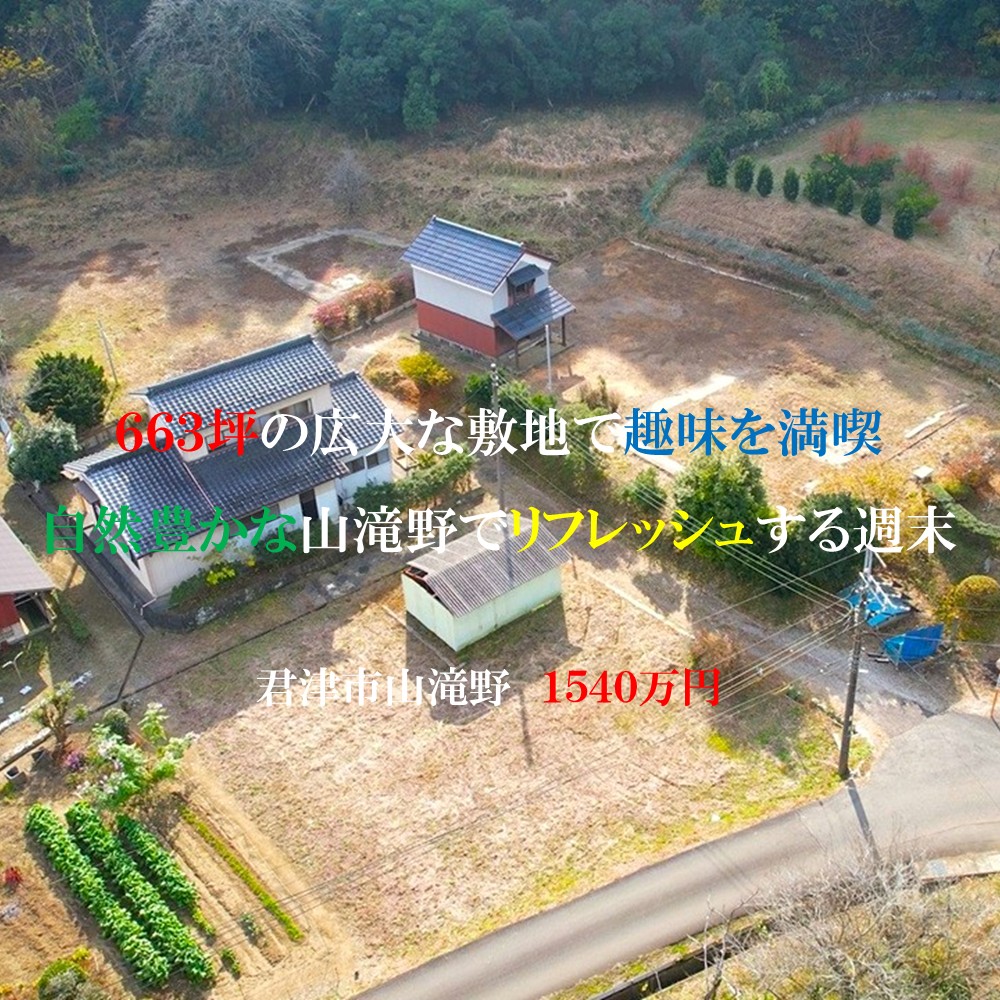 君津市山滝野・広い敷地を楽しむ家 建物6DKに2階建の蔵付 敷地663坪にはドッグラン、バレルサウナ、グランピング等何でも可能