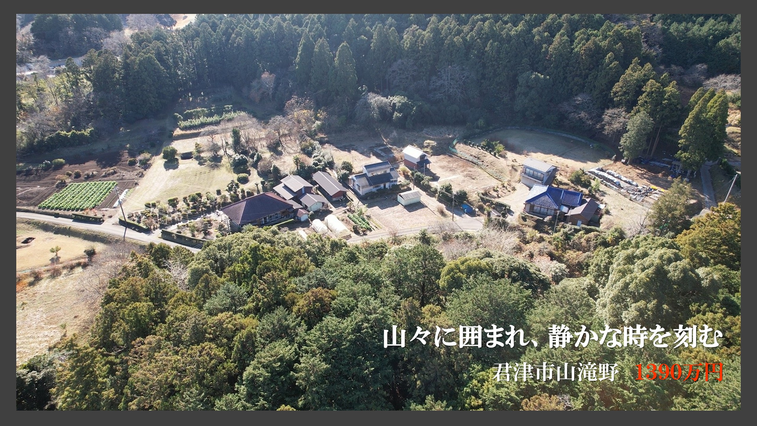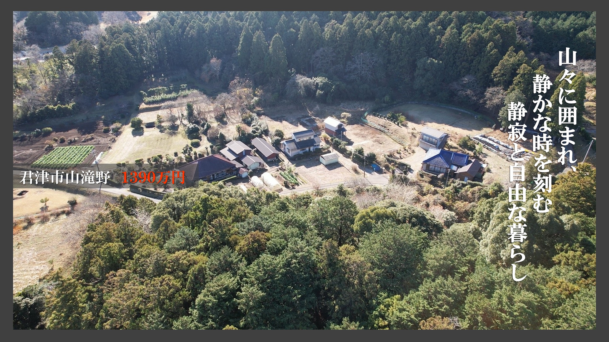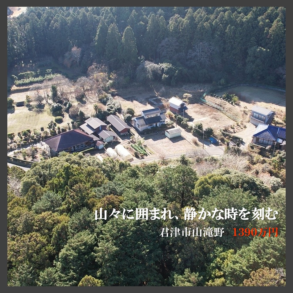 君津市山滝野・広い敷地を楽しむ家の価格を改訂しました。1540万円→1390万円へ。山々に囲まれ、静かな時を刻む663坪の自然暮らし。お求めやすくなったこの機会に、ぜひともご検討下さい。