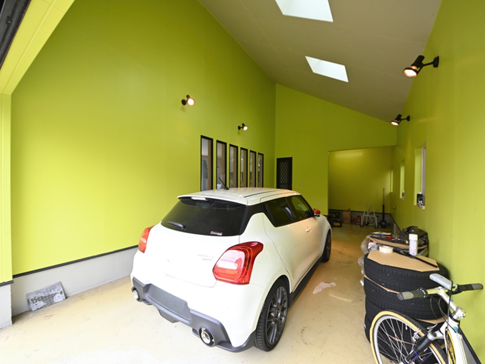 リビングから愛車を眺められる車好きにはたまらないガレージハウス