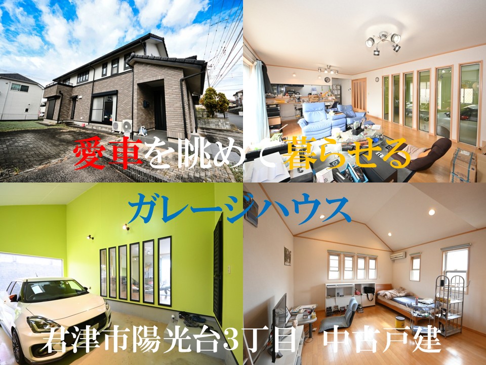 君津市陽光台3丁目・中古戸建 リビングから愛車を眺められるガレージ車庫 敷地はゆとりある100坪 全居室収納付きで広々生活できる206㎡・4SLDK